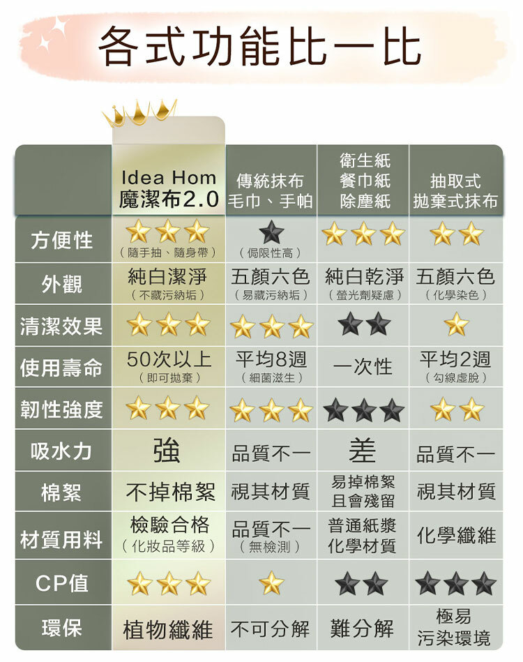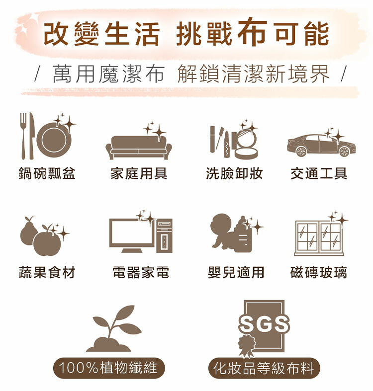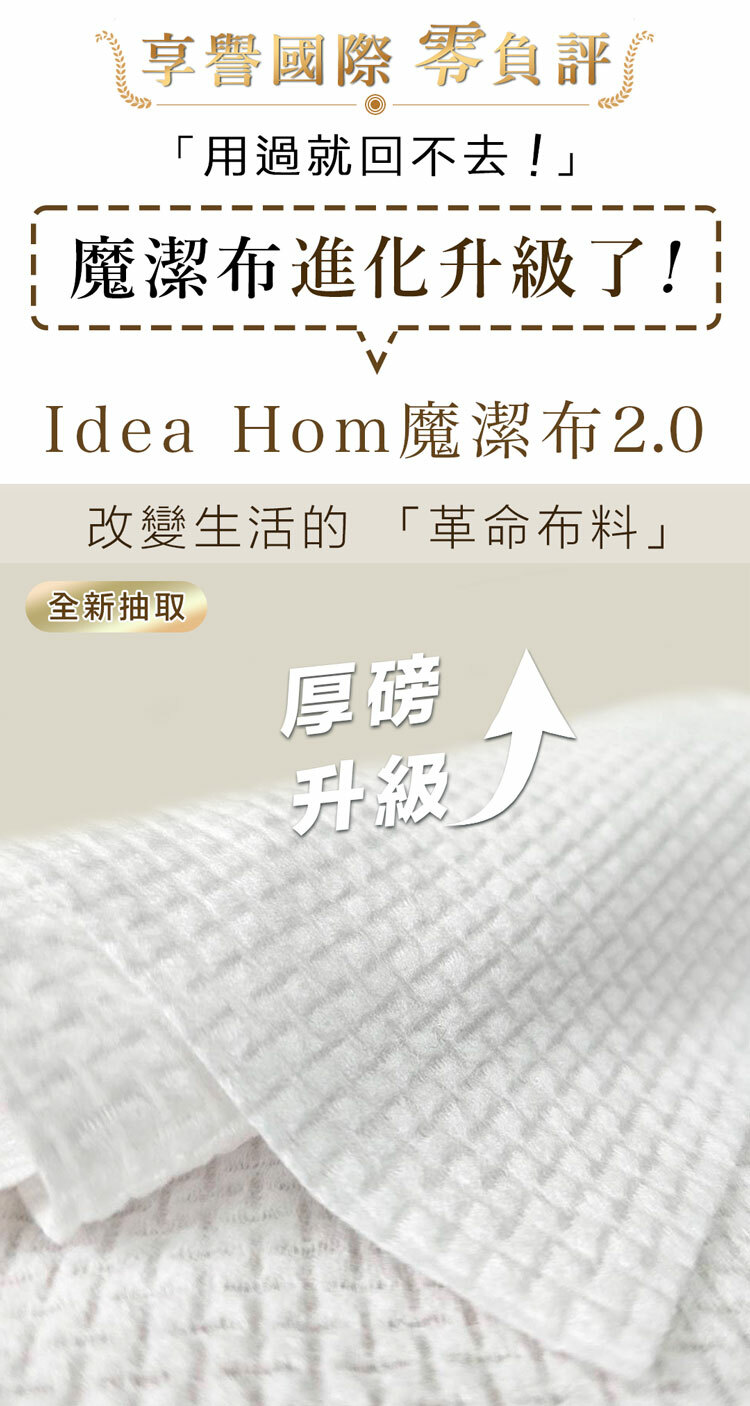 『嚴選化妝品等級布料材質』,『精緻的水針刺無紡交叉工藝』,『搭配特殊的十字壓紋結構』。讓魔潔布能輕鬆有效地將污垢徹底清除,從容應對各種場景。